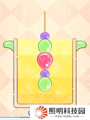 1.打開游戲,將水果放在上方虛線中,串成糖葫蘆。