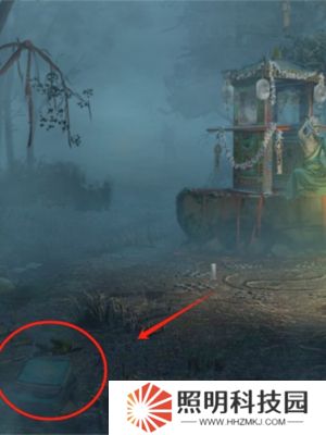 11、將不倒翁放在地上的玩具圈中隨后獲得福字旗和紙元寶,將面包、紙元寶放到墳場墳墓群前的石供桌上,按大石碑上的線索調整紙元寶的位置,然后就會開啟進入喪儀堂的道路。