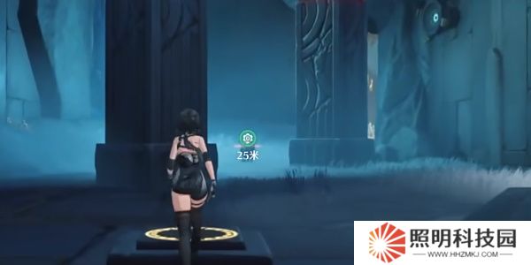 5、跟隨指引找到第一個防御節點,我們使用移星鑰進行解謎挑戰,只需要將上下兩根移動的柱子移動到光線下開啟時間停滯就可以完成挑戰開啟第二個防御節點了。