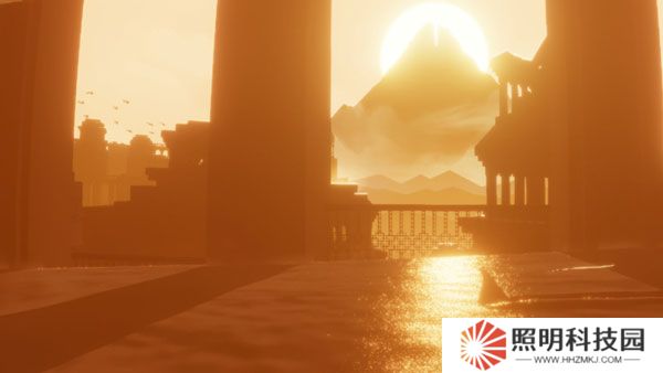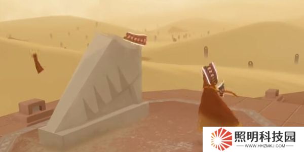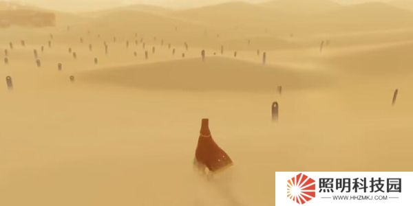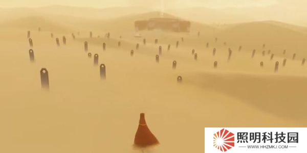 2.在一望無際的沙漠,玩家扮演一位旅人,向前行走,周圍都是矗立的石碑。