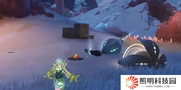 6.打開地圖傳送到游龍脊右上方的小型信標,然后跟隨任務指引來到一處營地,調查其中異常的地方。