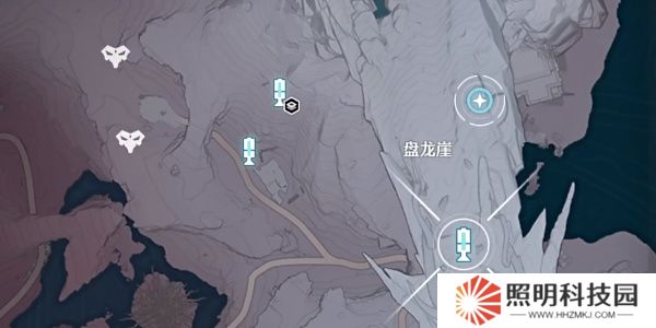 4.打開地圖傳送到如下圖所示所示的盤龍崖小型信標,跟隨任務指引來到海邊的城堡廢墟中調查異常之處。