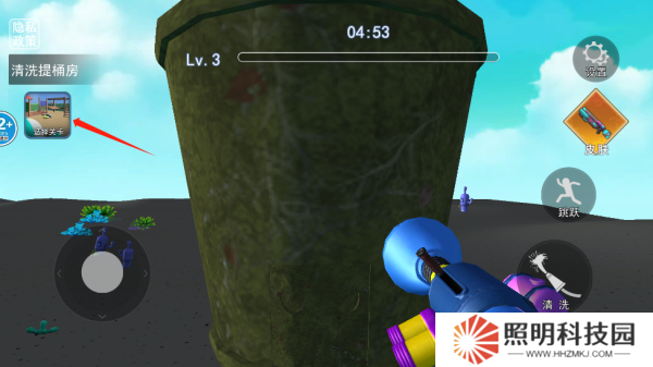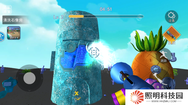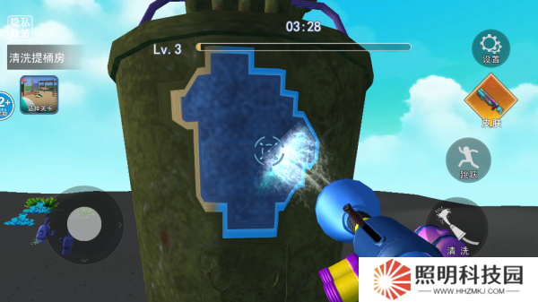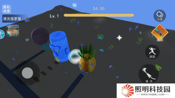 2、進入到場景內后玩家們滑動左下角按鍵控制角色移動,點擊右側進行清潔和跳躍。