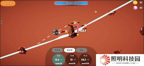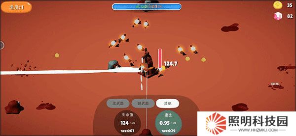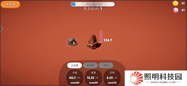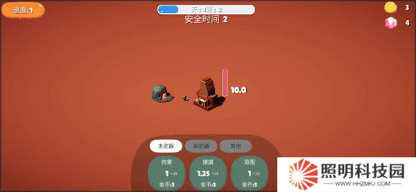 2、獲得的金幣將主武器傷害提升到40.7,速度提升到12.25,范圍提升到6.55。