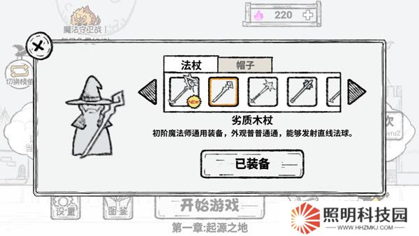 3、然后點(diǎn)擊【更換裝備】,在這里可以更換魔法師的法杖和帽子。