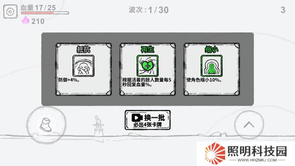 5、每通過一個波次還可選取一個技能卡牌,可用來提升角色戰(zhàn)力。
