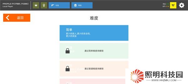 3、然后還會(huì)存在著難度的選擇,只有通關(guān)簡(jiǎn)單難度之后才能夠解鎖后面的難度。