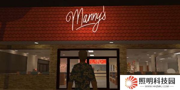 4.夜幕降臨,在醒來以后尋找到一家漢堡店,名為“曼尼漢堡店”。