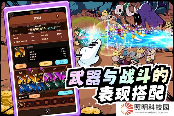 2、玩家們還可以為其穿戴上各種各式各樣的武器裝備,解鎖全新攻擊方式的同時增加了戰斗能力。