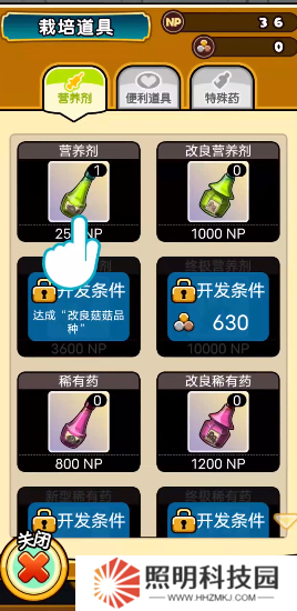 8、在道具的界面當(dāng)中,你可以使用不同的道具來(lái)讓自己的菇菇更好的進(jìn)行生長(zhǎng)。