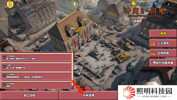 1、玩家們在本站下載安裝完成之后就能夠啟動游戲,在主界面當中點擊兵種選擇。