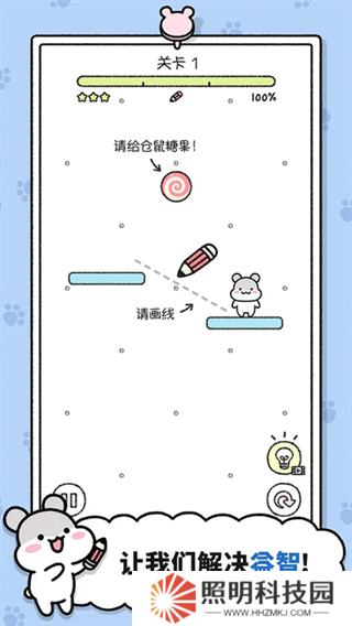 3.手指劃兩下,畫出黑線調(diào)整糖果的走勢(shì),幫助小倉(cāng)鼠獲取糖果,獲取更多的星星,需要玩家謹(jǐn)慎思考。