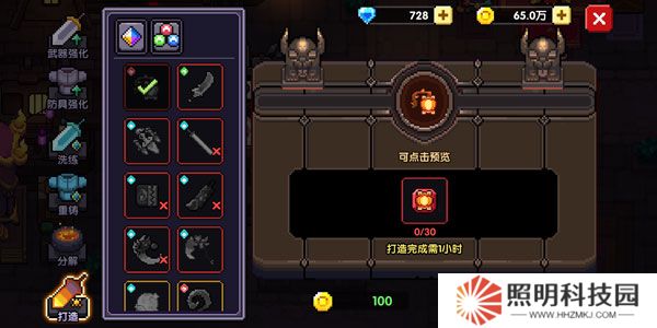 5、此外,玩家也有可能通過活動或在阿兔商店中購買了裝備碎片,集齊碎片后可在地圖左側(cè)的鐵匠處打造裝備,但打造需要消耗一定的時間和金幣。