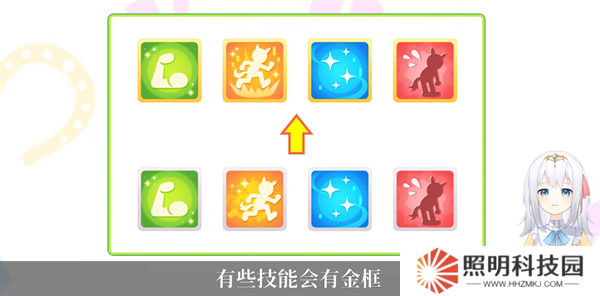 每一種技能都將會存在著一個帶金框的上位技能,具有更加優秀的效果。