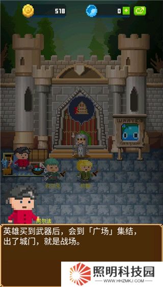 3、玩家們出售武器后,英雄們需要到廣場集結前往戰場。