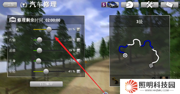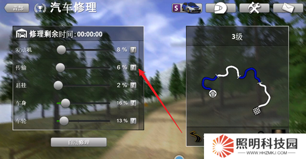 2、然后就會進入到汽車修理的界面當中,拖動各個部件的進度條就能夠對其進行修理。