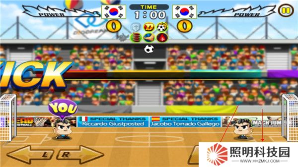 3、在游戲中,“Jump”按鈕用于控制角色跳躍,“Kick”按鈕則用于踢球。