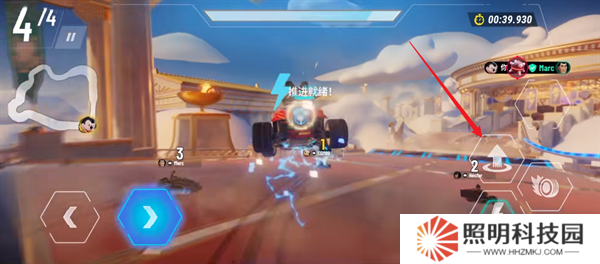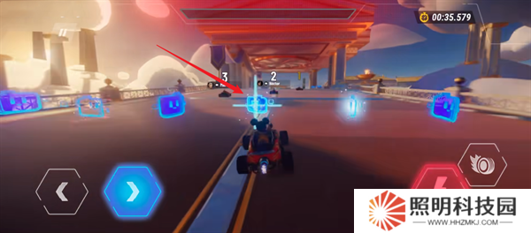 5、開始比賽之后,玩家們需要使用左下角的方向鍵來(lái)控制自己的卡丁車進(jìn)行競(jìng)速。