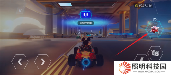 12、玩家們也可以通過右下角的跳躍鍵來(lái)讓自己的卡丁車主動(dòng)的進(jìn)行跳躍,并跨越場(chǎng)景當(dāng)中的障礙。