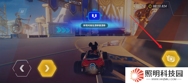 7、當(dāng)遇到轉(zhuǎn)彎路口之后,可以點(diǎn)擊右下角的漂移鍵來(lái)進(jìn)行飄逸,更加順暢的進(jìn)行駕駛。