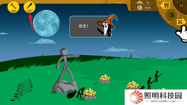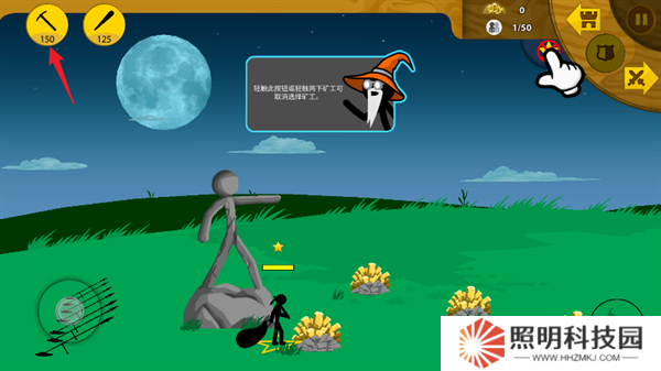 6、玩家們點擊最上級的第一個圖標召喚礦工,點擊右上角的星星圖標即可點擊控制礦工。