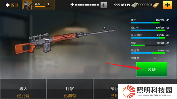 3、選擇需要升級的槍械點(diǎn)擊右下角裝備。