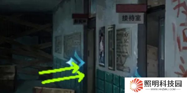 5.前往左側進入走廊,看到走廊上有恐怖娃娃,在右側找到接待室,使用門禁卡將接待室的門打開。
