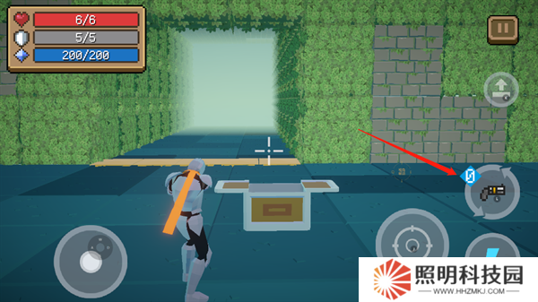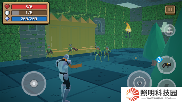 進(jìn)入到場(chǎng)景中后,我們可以看到,左側(cè)輪盤控制移動(dòng),右側(cè)按鍵控制攻擊跳躍等。
