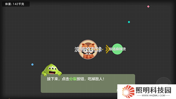 3、場景中會出現綠色的刺球,吞噬它玩家們就會自動進行分裂。