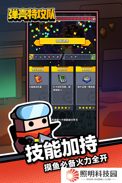 3、隨著你的角色升級,有機(jī)會學(xué)習(xí)新的技能,系統(tǒng)將隨機(jī)生成三個技能選項,根據(jù)戰(zhàn)斗需求來自由選擇。