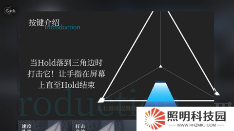 4、Hold按鍵:當Hold落到三角邊時打擊它。讓手指在屏幕上直至Hold結束。