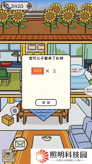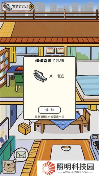 2、點擊箱子就能夠收到兒子寄來的小魚干禮物,而小魚干則可以用來購買各種不同類型的物品。