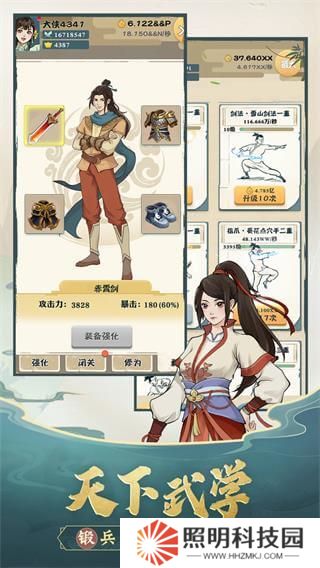 1、游戲具有著多種武功功法秘籍可以解鎖,自身力量將會因為掌握更多技能而變得更加強大,