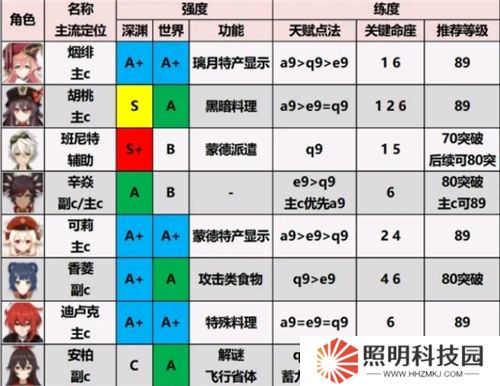 胡桃>可莉=迪盧克>班尼特>煙緋>香菱>辛焱>安柏