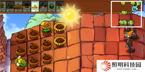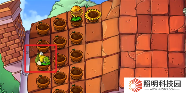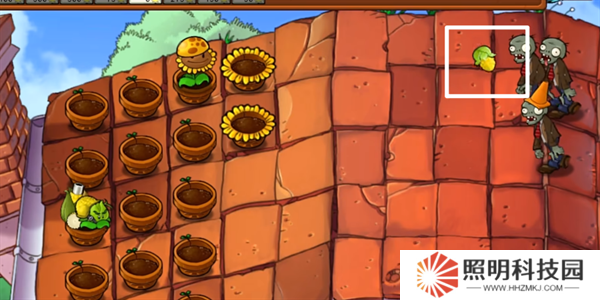 1、玩家們首先需要造關卡的場景里面種植一株玉米卷迫擊炮。