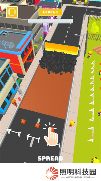 3、平鋪完成后,玩家們需要使用道具對路面進(jìn)行打磨。