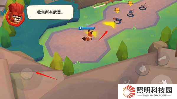 3、主要的游戲玩法非常簡單,先跟著新手的提示來收集武器。