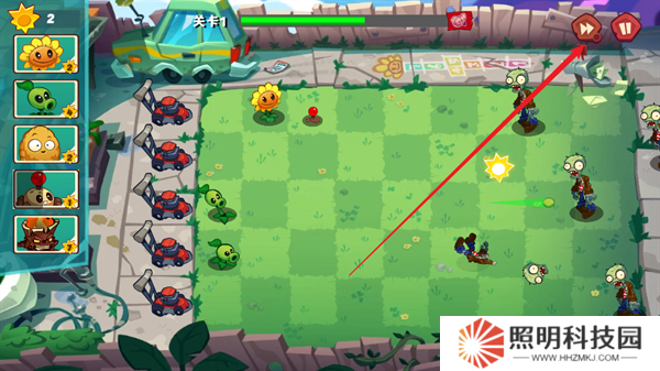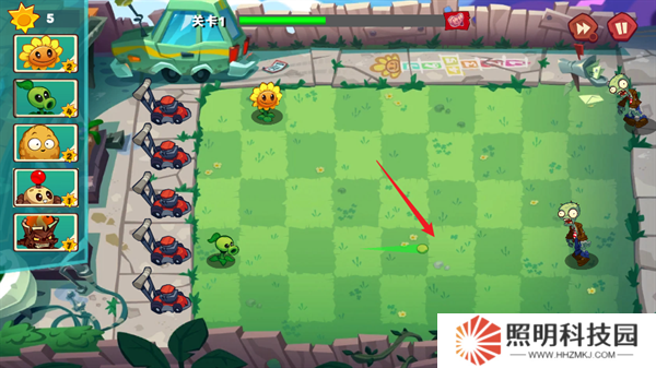 6、通過(guò)種植攻擊型的植物,它們會(huì)自動(dòng)的攻擊出現(xiàn)在自己面前的僵尸。