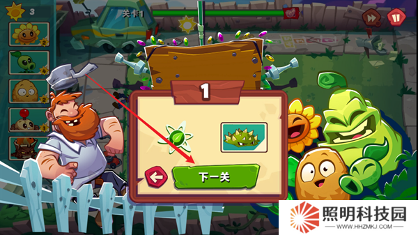 8、將所有的僵尸都擊敗之后,你就能夠獲取到關(guān)卡的勝利,得到相應(yīng)的獎(jiǎng)勵(lì),還可以點(diǎn)擊下一關(guān)來(lái)繼續(xù)進(jìn)行游玩。