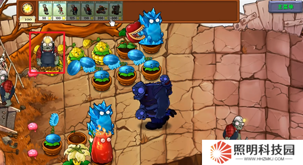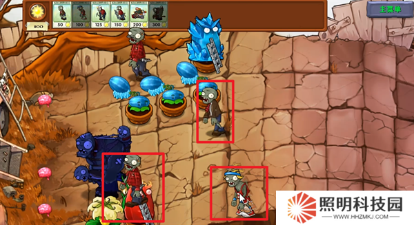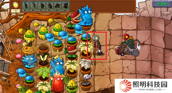 2、投籃僵尸前進(jìn)時(shí),在最前方放置一個(gè)普通僵尸。