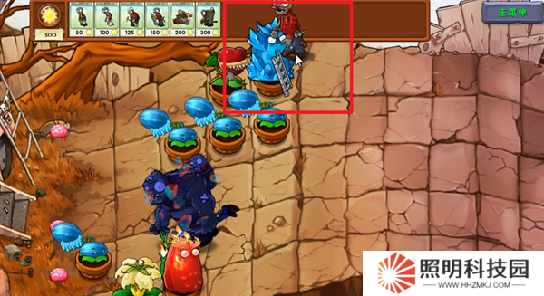 1、首先在第三行放置一個(gè)投籃僵尸。