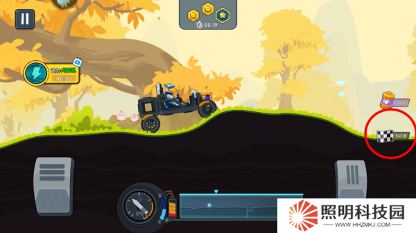 1. 啟動游戲后,使用屏幕兩側的控制按鈕來操縱車輛的行進與速度。
