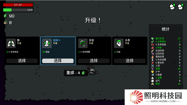 4、擊殺怪物能夠獲取到一定的經驗值,左上角綠色的經驗條滿了之后就會升級,你可以從多種隨機的能力當中挑選一種進行提升。