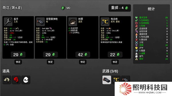 5、每一波的怪物結束之后,你還能夠進入到商店之中,消耗自己的資金來購買裝備武器。