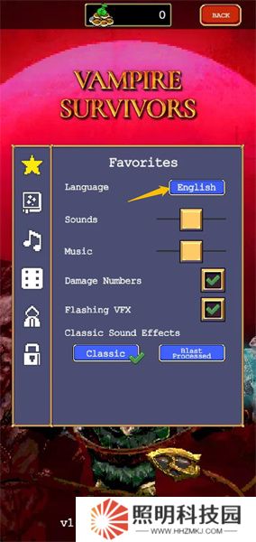 2、接著玩家們在彈出的界面中點擊右上角的english選項。