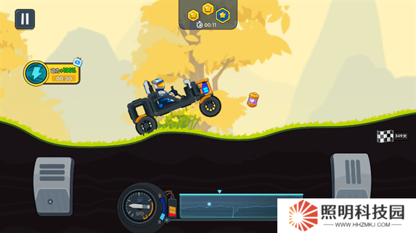 3、玩家們控制賽車拾取場(chǎng)景內(nèi)的電池可以增加賽車的電量。