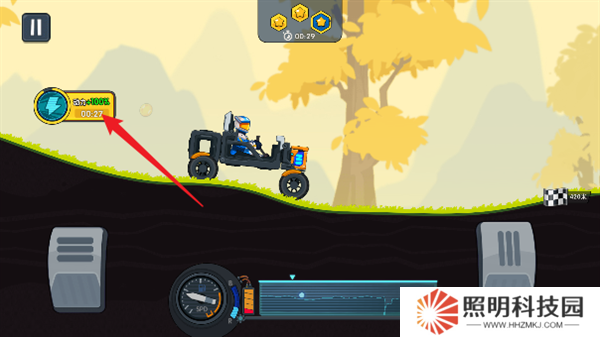 2、玩家們點(diǎn)擊左側(cè)的圖標(biāo)即可使用道具增加賽車的動(dòng)力。