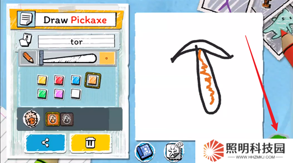 2、然后你需要在畫板上面畫出鎬子的形狀,并點擊右下角的對勾。