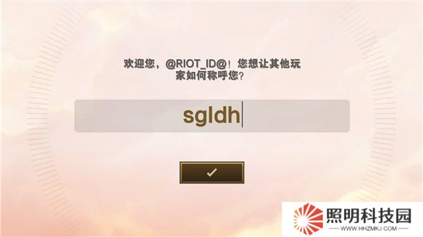 8、注冊完成后,進入游戲填寫游戲昵稱,填寫完成后點擊下方圖標。