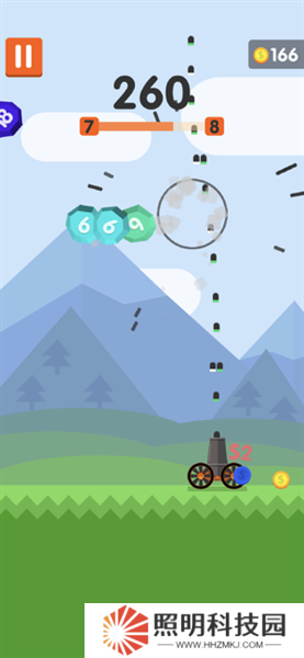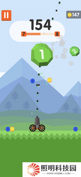 1.在關(guān)卡之中控制火炮的位置來(lái)對(duì)掉落的石頭進(jìn)行射擊,擊碎越多的石頭所能夠獲取到的分?jǐn)?shù)也越多。
